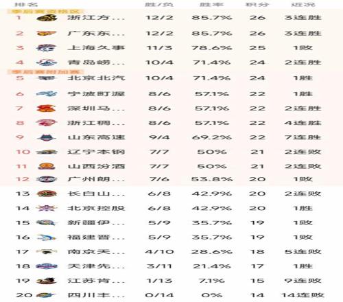 CBA最新积分榜:广东+广厦12胜领跑,深圳10797上海,北京第5